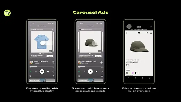 Spotify új hirdetési formátummal bővíti eszköztárát: a cég bejelentése szerint immár interaktív carousel-, vagyis swipe-elhető hirdetéseket vezet be, amelyek egyszerre több, legfeljebb hat terméket képesek bemutatni képpel, linkkel, leírással és opcionális ár- vagy akcióinformációval. A kreatívok a Now Playing nézetben jelennek meg, miközben a felhasználó tartalommal foglalkozik, ezzel vizuálisan is aktívabbá téve a platformot. A változás kommunikációjában a Spotify legújabb terminológiával írja le önmagát: nemcsak „streaming platform”, hanem „interactive multiformat ecosystem”. Brian Berner, a cég Global Head, Advertising Revenue and Partnerships pozícióját betöltő vezetője szerint a felhasználói élmény egyre interaktívabbá válik, több az audio mellett a vizuális tartalom, ezért a hirdetési stratégiának is követnie kell ezeket a trendeket. A carousel-hirdetés ötletét hosszabb távon a Meta népszerűsítette, a Spotify mostanra azonban azért emeli be a saját portfóliójába, mert a felhasználók egyre több időt töltenek nézéssel is a platformon — részben a több zenei videó és videós podcast beemelésének köszönhetően. Berner azt hangsúlyozta, hogy céljuk megtörni a „csak felső-funnel” felfogást, és egy teljes funnel megoldást felépíteni, amely hosszabb távon erősebb app-installokat és konverziókat hozhat. A hirdetők emellett fizethetnek azért is, hogy egy adott playlist kizárólagos márkaként jelenjen meg: ilyen szponzorált lejátszásoknál a reklámok kevésbé megszakító jellegűek, kevesebb szünetet hagynak a lejátszás során. Mind a carousel-hirdetések, mind a szponzorált playlistek a Spotify ingyenes, reklámokat tartalmazó rétegén fognak megjelenni.