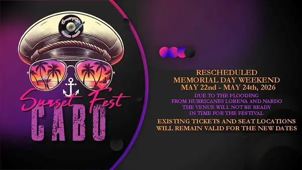 A Sunset Fest Cabo, amelyet sokan a „Yacht Rock Woodstockjaként” emlegetnek, új dátumot kapott a hurrikánok okozta áradások miatt. A fesztivál szervezői hivatalosan bejelentették, hogy az esemény 2026. május 22–24. között kerül megrendezésre, miután a Lorena és Narda hurrikánok által okozott hatalmas esőzések jelentős károkat okoztak a helyszínen.